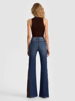 alice + olivia - Bella Shiny Vegan Skinny Bootcut Pant in Black