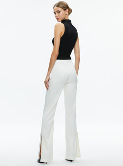 alice + olivia - Lara Mid Rise Side Stripe Slit Pant in Ecru