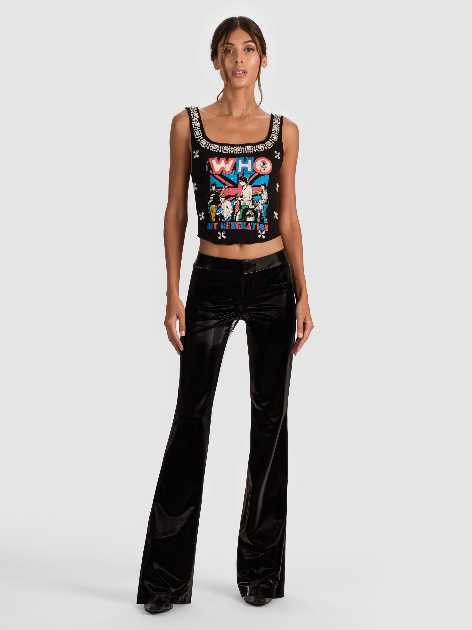 alice + olivia - Bella Shiny Vegan Skinny Bootcut Pant in Black