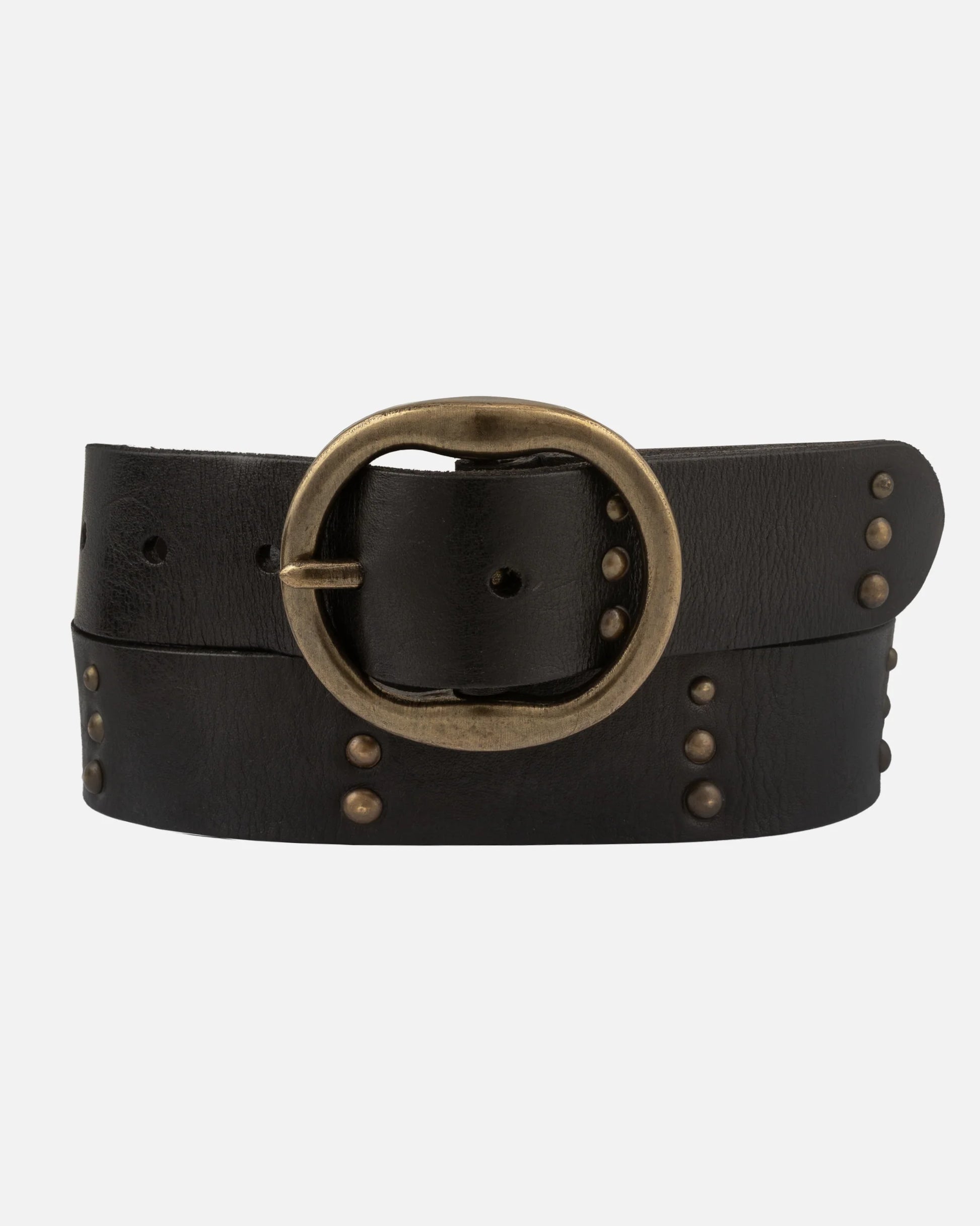 Elevate your outfits year-round with Dion, the perfect jean and dress belt. Crafted from premium buffalo leather and adorned with antique gold studs and a round buckle, Dion exudes a charming western vibe. Its versatile strap, neither too thick nor too thin, pairs effortlessly with your favorite jeans, breezy summer dresses, and more. Make a statement in any season with the Dion western belt.