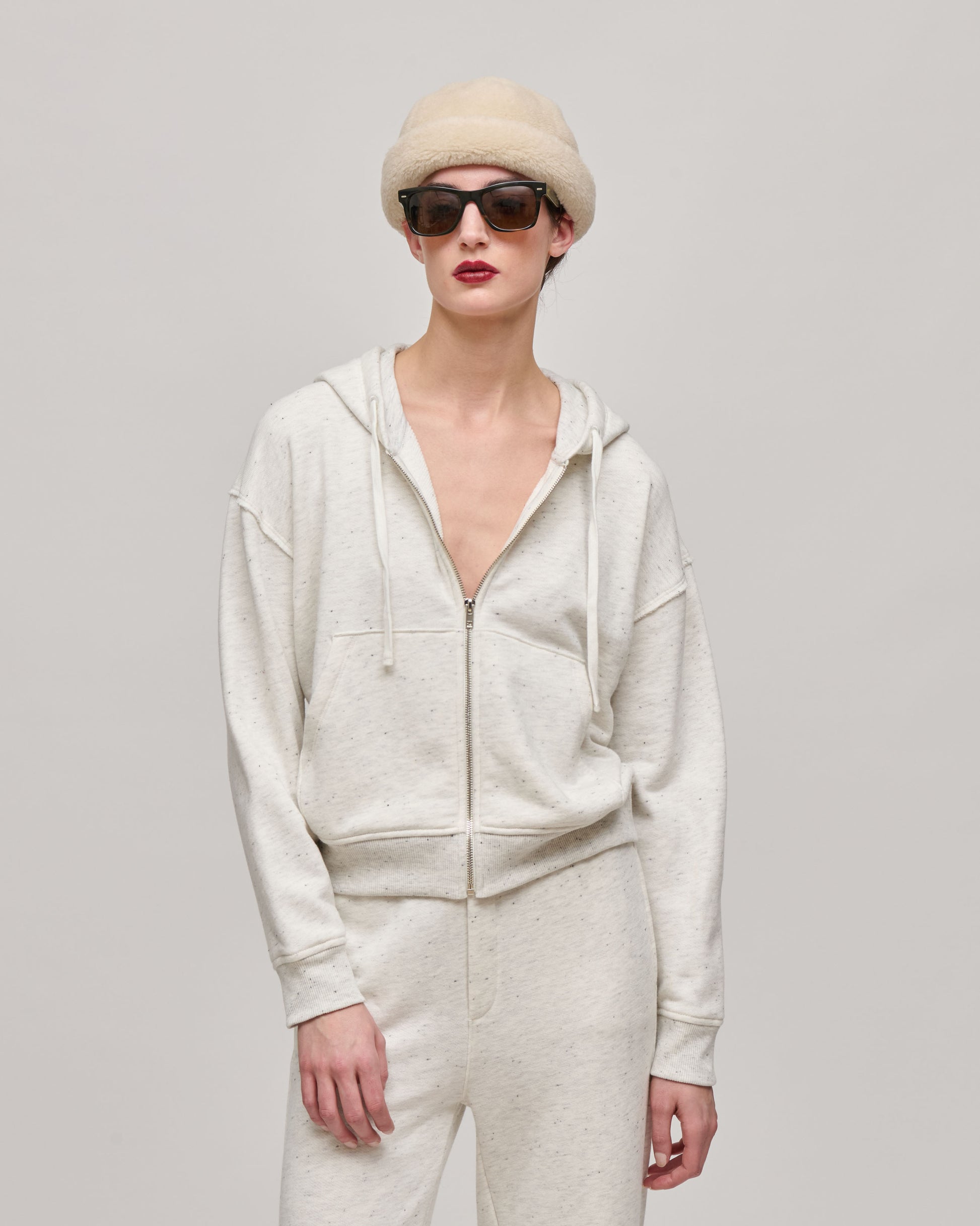 Exposed Seam Zip-Up Hoodie in Chalk Donegal from ATM