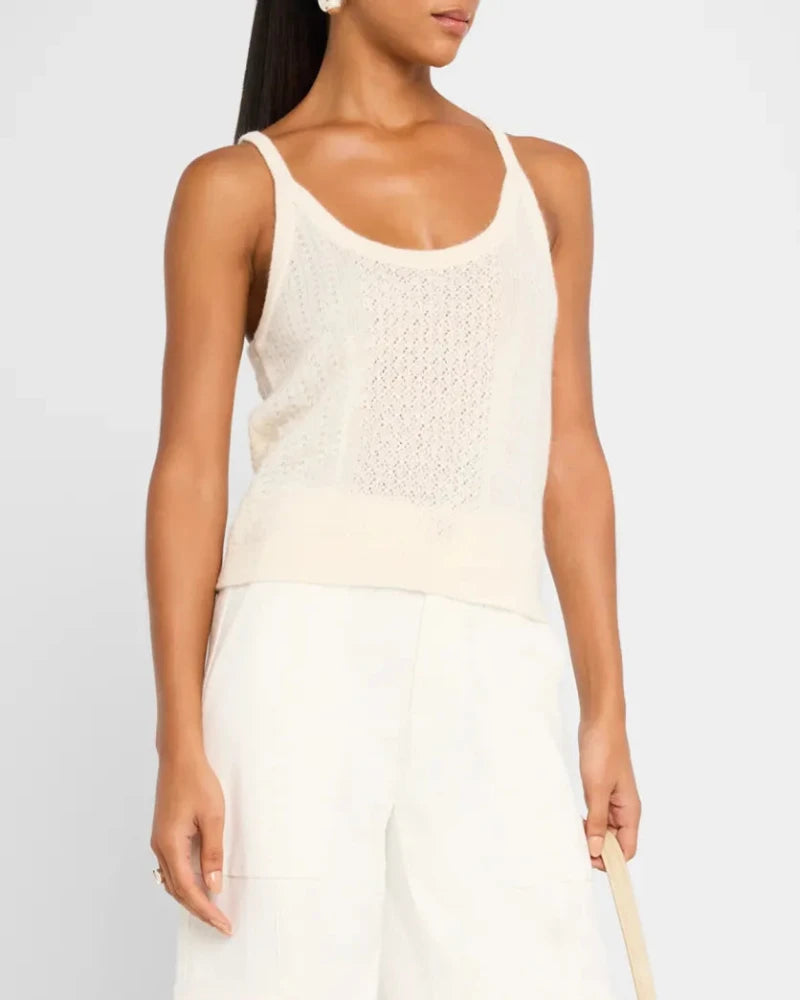 ATM - Wool Blend Mixed Stitch Tank in Chalk