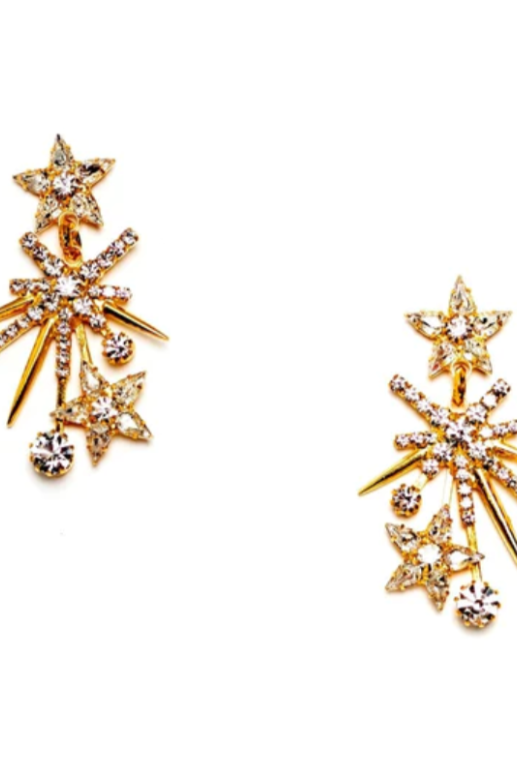 As celestial as their name, the Celeste Earrings feature a constellation of glittering stars dangling from a petite star stud. Swarovski Crystals, Premium Czech Crystals, 24kt Gold Plate, Post Closure, Proudly Made in the USA.