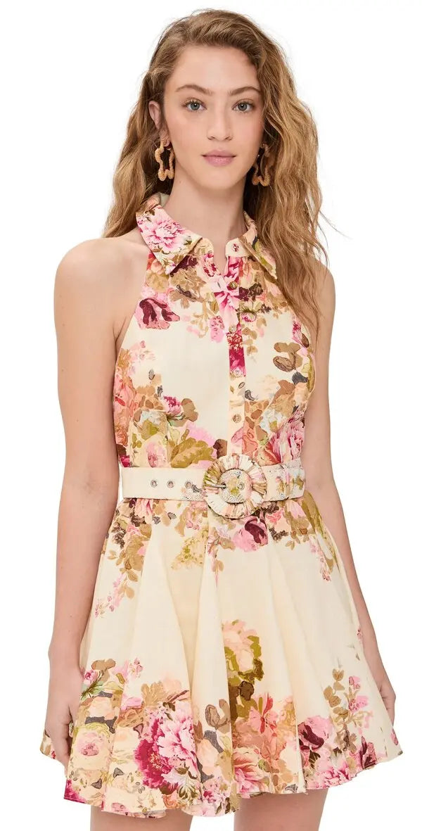 Hemant & Nandita - Floral Mini Dress with Belt in Ivory Mix