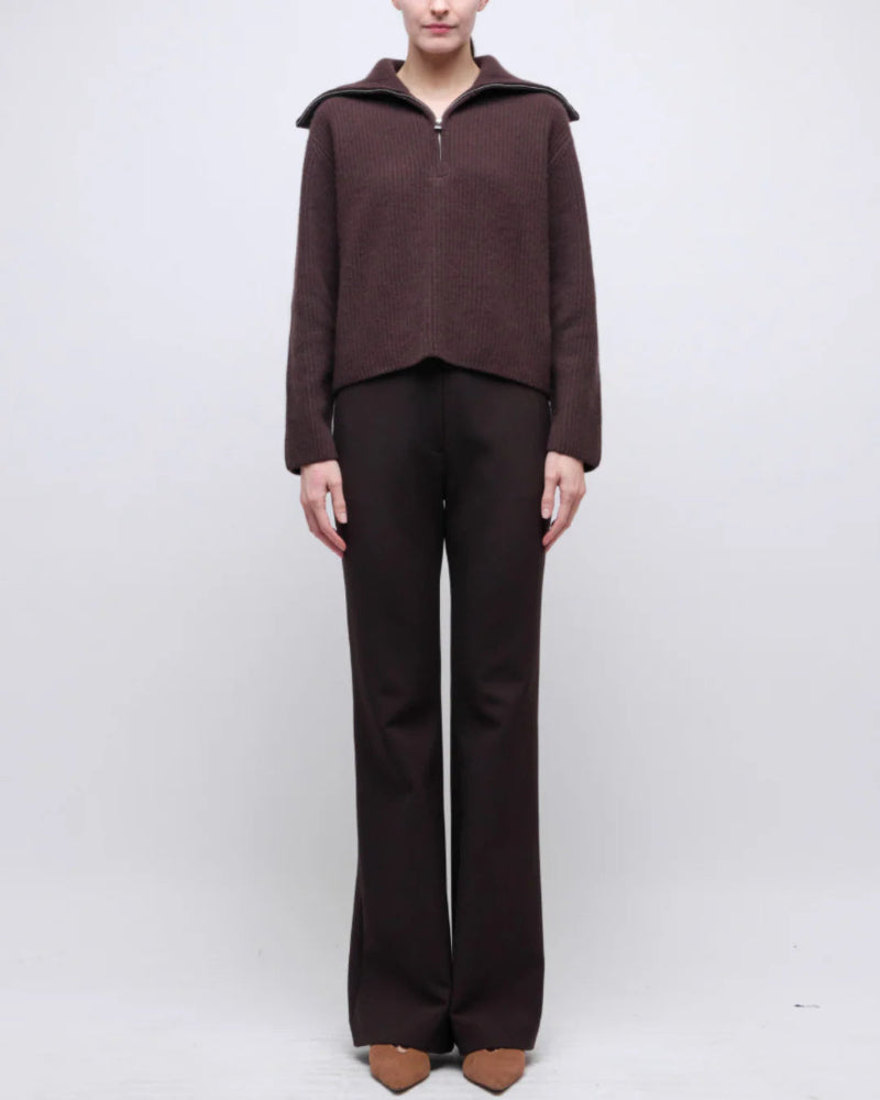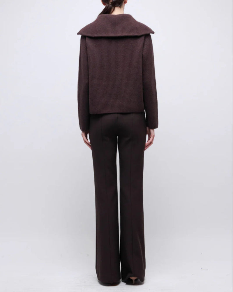 The Landry Sweater in Chocolate. This 100% cashmere essential sweater brings warmth and elegance together. With its vibrant color and timeless fit, it’s a cozy must-have for seasonal layering.