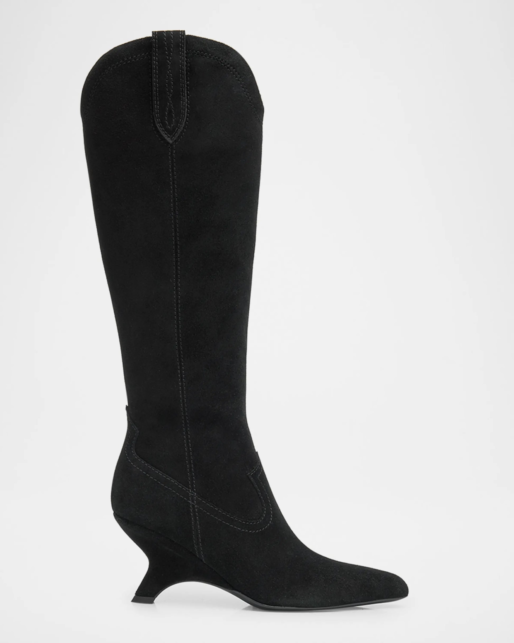 SIMKHAI - Shadow Suede Western Knee High Boot in Black